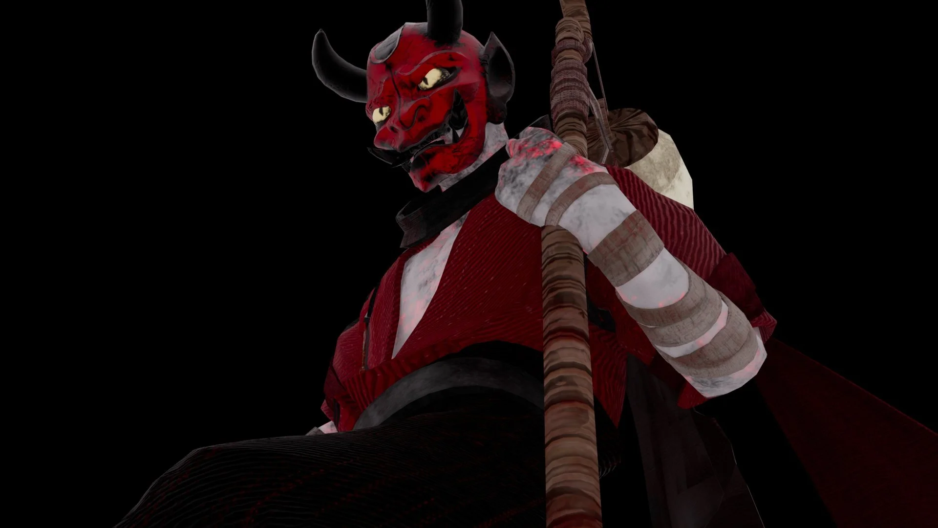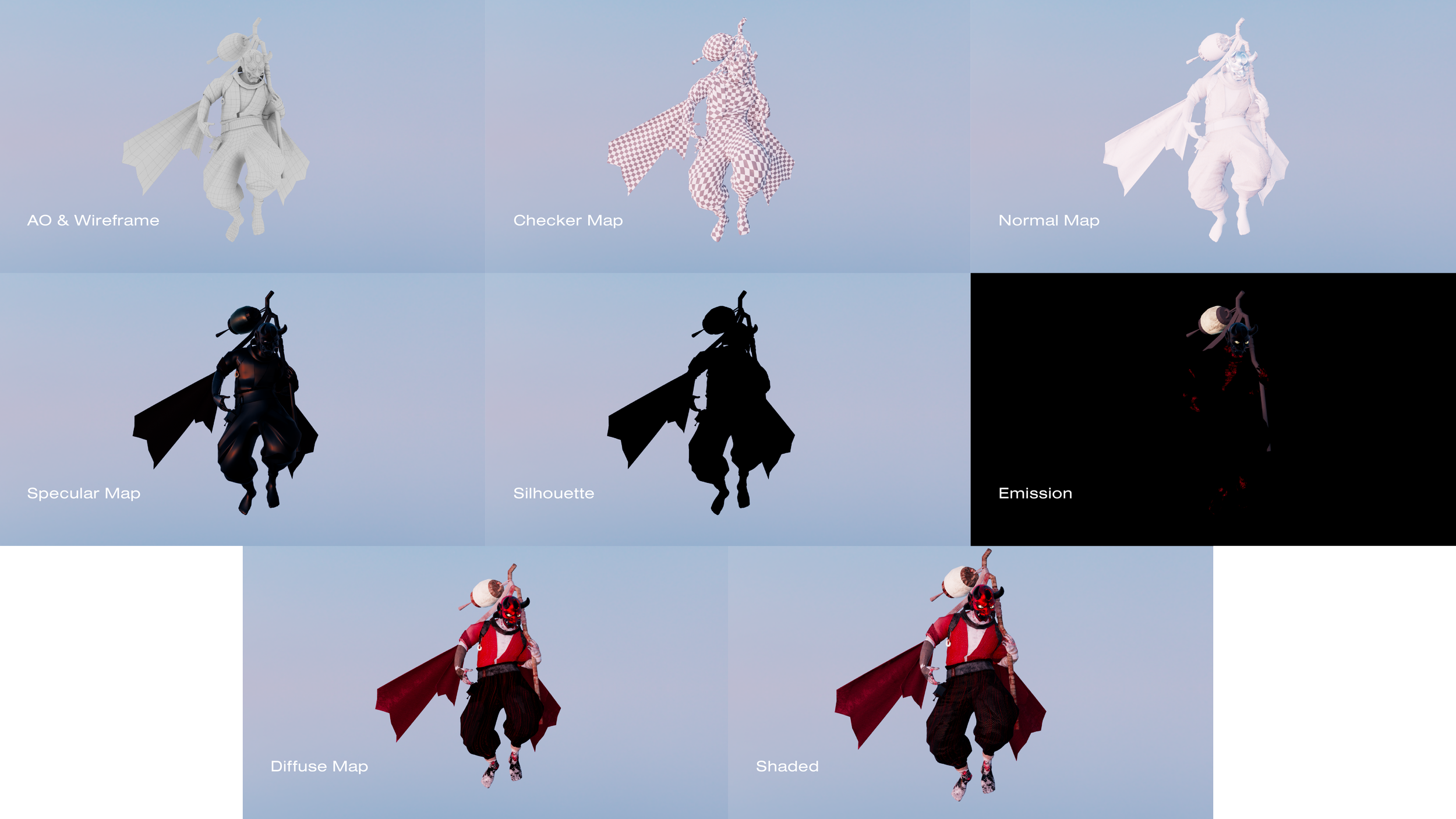Inspired by the look of Oni_ a mystical creature from Japanese folklore and the lamplighter tradition from Ireland, I came up with a character called The Lamp Seller, a guard who guides lost souls to The Gate of Judgement_ an entrance to the afterlife.